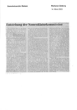 Die Strassen in der stets wachsenden Gemeinde Riehen erhielten im Jahr 1900 neue, offizielle Namen. Bis ins 19. Jahrhundert hatten nur wenige Gassen und Wege innerhalb des Dorfes eigene Namen. Seit 1860 ist im Kanton Basel-Stadt eine staatliche Kommission für die Vergabe von Strassennamen verantwortlich. Das letzte Wort bei der Wahl eines offiziellen Strassennamens hatte der Kleine Rat und ab 1876 der Regierungsrat von Basel-Stadt. Dieser Praxis fehlte allerdings die gesetzliche Grundlage, bis 1888 ein neues Gesetz den Basler Landgemeinden ein Mitspracherecht bei der Benennung der Strassen auf ihrem Boden einräumte. Fortan stand die Benennung der Riehener Strassen dem Gemeinderat zu, doch durfte er dabei keine schon in der Stadt gebrauchte Bezeichnung verwenden. Bereits 1884 hatte Riehen auf kantonalen Druck hin ein erstes amtliches Strassenverzeichnis für die ganze Gemeinde erstellt. Ab 1947 war die kantonale Nomenklaturkommission, in der auch die Gemeinde Riehen vertreten ist, für die Namengebung zuständig. Die neuen Strassennamen griffen entweder Flurnamen auf oder wurden frei gewählt. Dabei gab es vier Überkategorien: Natur und Landwirtschaft, alte Völker, Lagebezeichnungen und angestammte Riehener Familiennamen oder mit Riehen verbundene Persönlichkeiten, in jüngerer Zeit vorzugsweise auch Frauen. 1996 wurde in Riehen eine eigenständige Nomenklaturkommission geschaffen. Diese legt ihre Vorschläge dem Gemeinderat vor, der darüber entscheidet. Die kantonale Nomenklaturkommission überprüft anschliessend, ob die gewünschten Namen nicht bereits in Basel oder Bettingen vergeben sind.