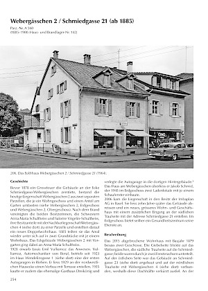 Nachdem die Gebäude auf den Parzellen Webergässchen 2 und Webergässchen 4 1878 einem Brand zum Opfer gefallen waren, entstanden auf den vereinigten Liegenschaften zwei neue Häuser, die 1885 wieder zu eigenen Parzellen wurden. Das Eckhaus hatte fortan die beiden Adressen Webergässchen 2 und Schmiedgasse 21. 1948 wurden auf der Seite der Schmiedgasse zwei Schaufenster eingebaut.