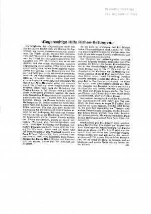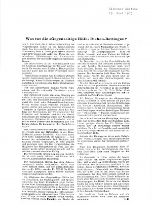 Der Verein Gegenseitige Hilfe Riehen Bettingen wurde 1965 im Sinne einer Nachbarschaftshilfe von Frauen im Kornfeldquartier gegründet.