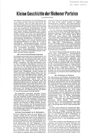 Raith, Michael: Kleine Geschichte der Riehener Parteien. In: Riehener Zeitung, 15.03.1974.
