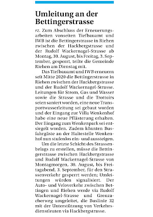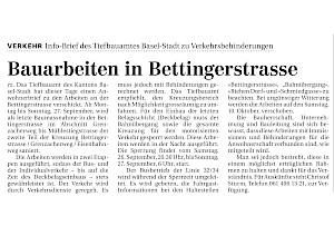 Die ursprüngliche Bezeichnung der heutigen Bettingerstrasse war ‹Wenkengasse›; sie spiegelt die primäre Funktion als direkteste Verbindung zum Wenkenhof. Der übliche und kürzere Weg nach Bettingen führte bis ins 19. Jahrhundert von der Schmiedgasse über die Mohrhalde. Dann gewann der bequemere Umweg über den Wenkenhof allmählich an Bedeutung, insbesondere mit dem zunehmenden motorisierten Verkehr. Für den untersten Abschnitt bis zur Bahnlinie wurde bis 1904 der Name ‹Wenkengasse› beibehalten.