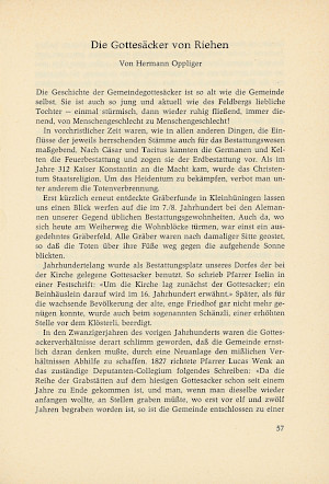 Oppliger, Hermann: Die Gottesäcker in Riehen. In: Jahrbuch z’Rieche 1966. S. 57–61.