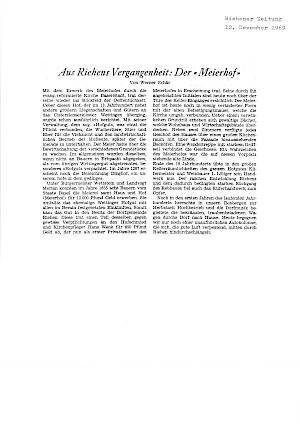 Mitten im Dorfzentrum liegt direkt hinter der Kirche eines der vermutlich ältesten Wohnhäuser der Region, der Meierhof. Der Gebäudekomplex hat seinen Ursprung im 12. Jahrhundert und befand sich innerhalb des befestigten Kirchhofs. Einst gehörten neben dem Wohnhaus auch Ställe, ein Schopf und eine ‹Zehntenscheune› dazu. Seit der Renovation 1973/74 dient das denkmalgeschützte Gebäude als Wohnhaus, die späteren Anbauten nutzt die Evangelisch-reformierte Kirche Riehen als Gemeindezentrum.