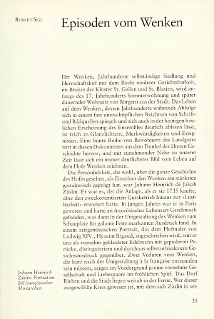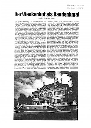 Kaufmann, Gerhard: Der Französische Garten des Neuen Wenken und seine Statuen. In: Jahrbuch z’Rieche 1995. S. 73–81.Raith, Michael: Die Besitzer des Wenkenhofs. In: Jahrbuch z’Rieche 1984. S. 31–33.