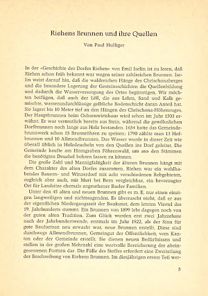 Hulliger, Paul: Riehens Brunnen und ihre Quellen. In: Jahrbuch z’Rieche 1963. S. 5–18.