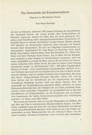 Krattiger, Hans: Die Gemeinde als Kunstsammlerin. In: Jahrbuch z’Rieche 1971. S. 7–13.