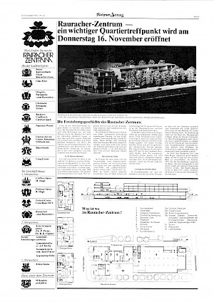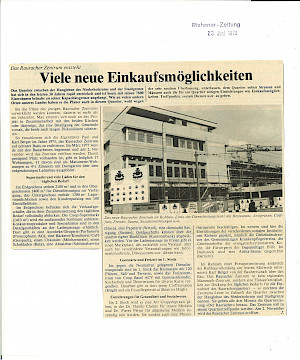 Mit der Eröffnung des Rauracher-Zentrums erhielt das noch junge Niederholzquartier 1978 ein Einkaufs- und Dienstleistungszentrum und damit zugleich einen wichtigen Bezugspunkt für die Quartierbewohnerinnen und -bewohner.