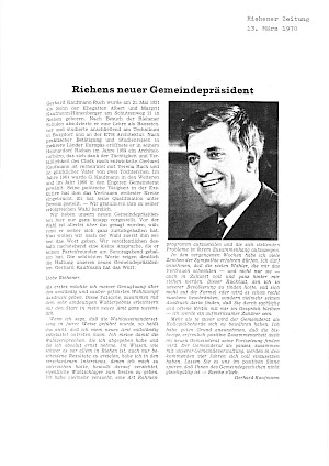 Gerhard Kaufmann, von Beruf Architekt, war Riehens prägende politische Persönlichkeit im letzten Drittel des 20. Jahrhunderts: Während 28 Jahren lenkte er die Geschicke des Dorfes als Gemeindepräsident. Er setzte sich vor allem für die Stärkung der Gemeindeautonomie, die Erhaltung historischer Bauten und die Bewahrung von Grünzonen ein.