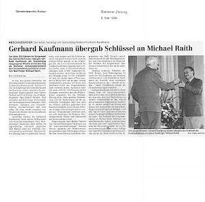 Raith, Michael: Gerhard Kaufmann, Gemeindepräsident von Riehen. «… mehr als nur Liegestühle rücken auf dem Deck der Titanic». In: Basler Stadtbuch 1998. S. 79–82.