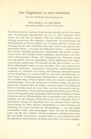Behret, Hans / Lehmann, Fritz: Der «Giggishans» in alter Schönheit. Aus der Werkstatt eines Restaurators. In: Jahrbuch z’Rieche 1972. S. 61–64.