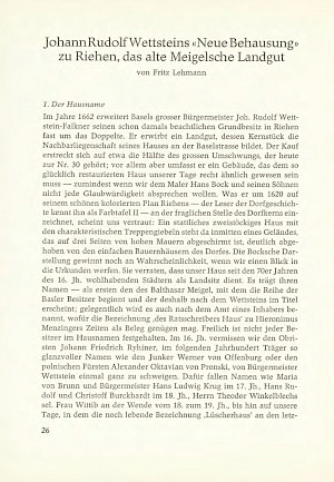 Lehmann, Fritz: Johann Rudolf Wettsteins «Neue Behausung» zu Riehen, das alte Meigelsche Landgut. In: Jahrbuch z’Rieche 1976. S. 26–56, hier S. 48, 52.