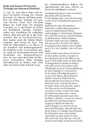 Lebenslauf Ruth Preiswerk-Tschopp. Gelesen an der Abdankungsfeier am 28. Juni 2023 in der Kornfeldkirche (in Privatbesitz).