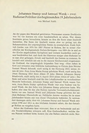 Raith, Michael: Johannes Stump und Samuel Wenk – zwei Riehener Politiker des beginnenden 19. Jahrhunderts. In: Jahrbuch z’Rieche 1971. S. 44–59, hier S. 58.