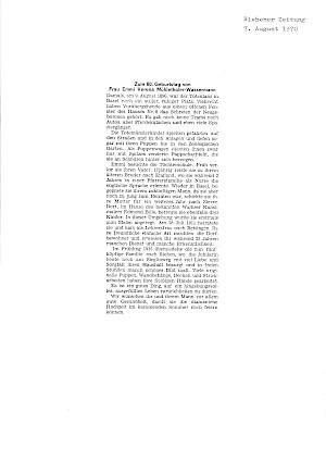 Verena Rentsch-Mühlethaler war eine Nationalökonomin und Schriftstellerin, die in Bettingen aufwuchs und von 1935 bis 1938 als junge Frau in Riehen bei ihren Eltern lebte.